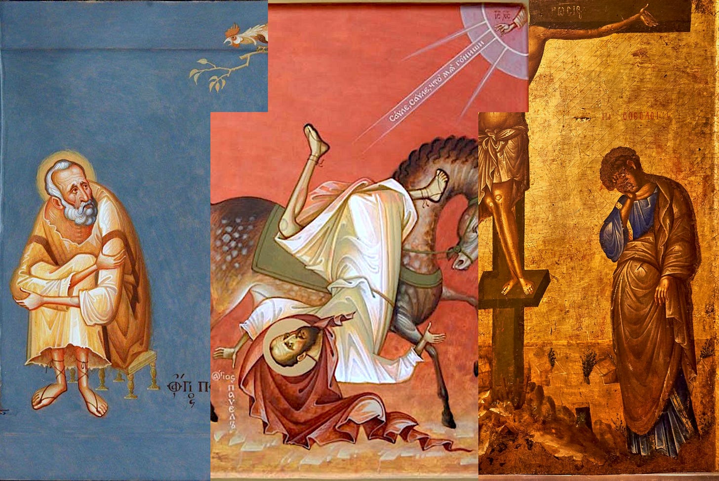 So the inclusion of James in these stories should both be a warning to Protestants, and a sign to Orthodox that their temptations are bound up with their relations to a primacy that is not their own. If Peter sins, ceasing to proclaim doctrines faithful to who Jesus Christ is and thereby challenging the Lord as an adversary vicar, that is at no time an excuse for John to stray from his calling in type or in virtue. And I talk about Catholics, Protestants, and Orthodox as a general pattern, but do know that, as is always the case with typology, the pattern is a fractal: this Peter–Paul–John social dynamic is observable in any Christian communal setting where elements of sacrificial leadership, redemptive apostleship, and theological prophethood are in play.